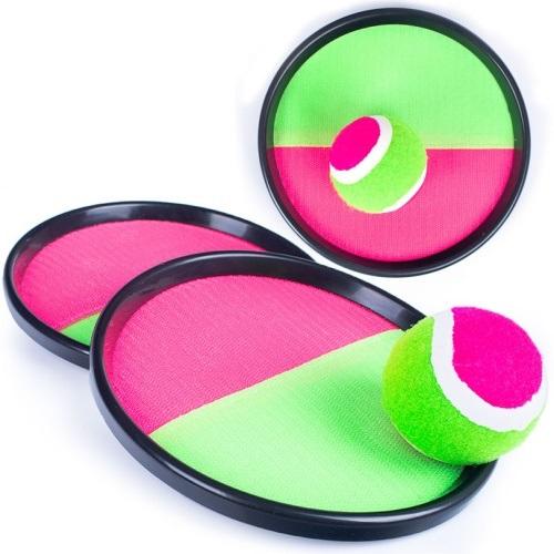 Rewelacyjny zestaw do gry w Catch Ball to idealna propozycja dla osób lubiących aktywnie spędzać czas na świeżym powietrzu. Zestaw sprawdzi się świetnie do zabawy zarówno w domu, jak i na zewnątrz. Obręcz paletki wykonana jest z wytrzymałego tworzywa sztucznego, a żywe kolory z pewnością przykują uwagę każdego dziecka. Zestaw zawiera 2 okrągłe paletki oraz piłkę