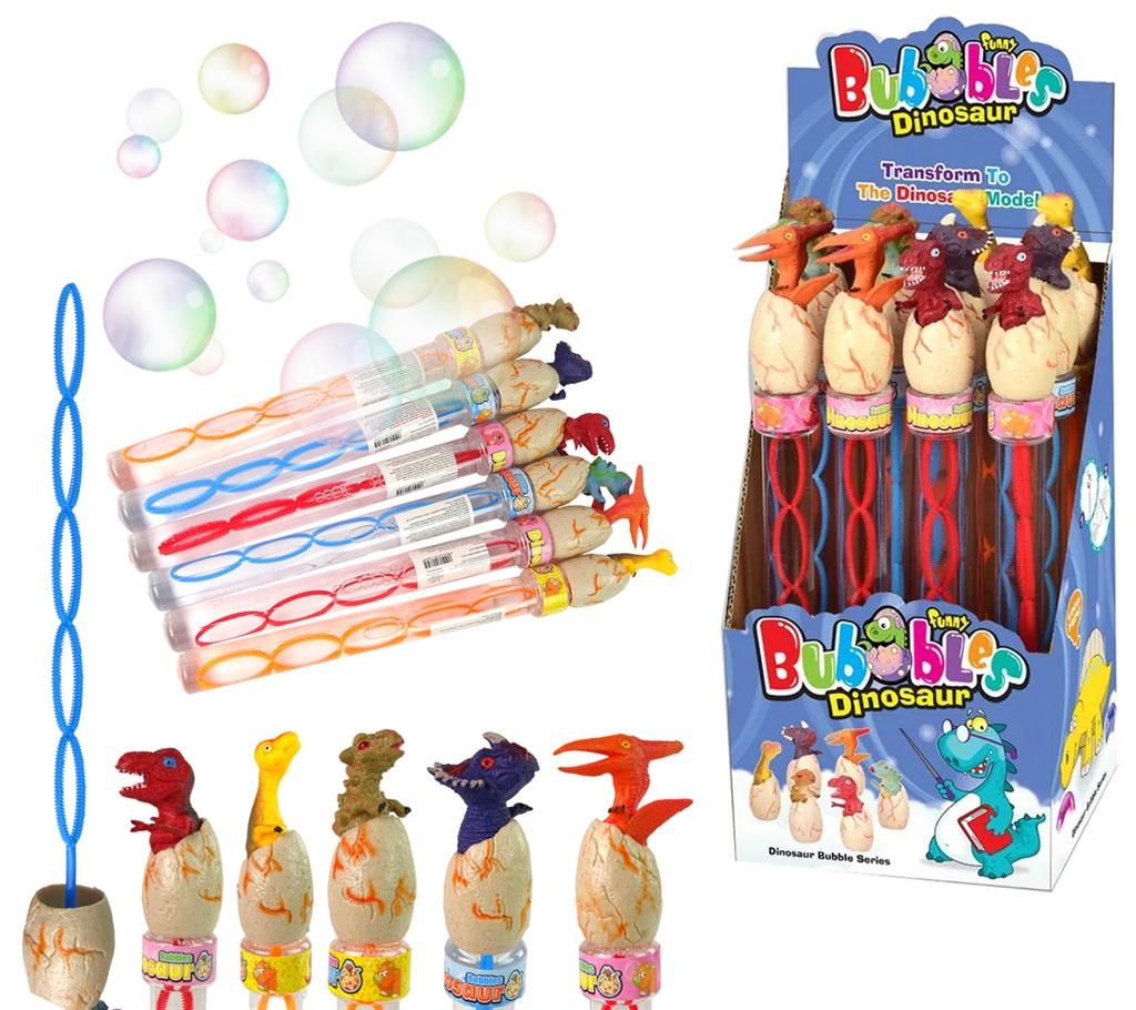 Bańki pałka z figurką dinozaura wykluwającego się z jaja.