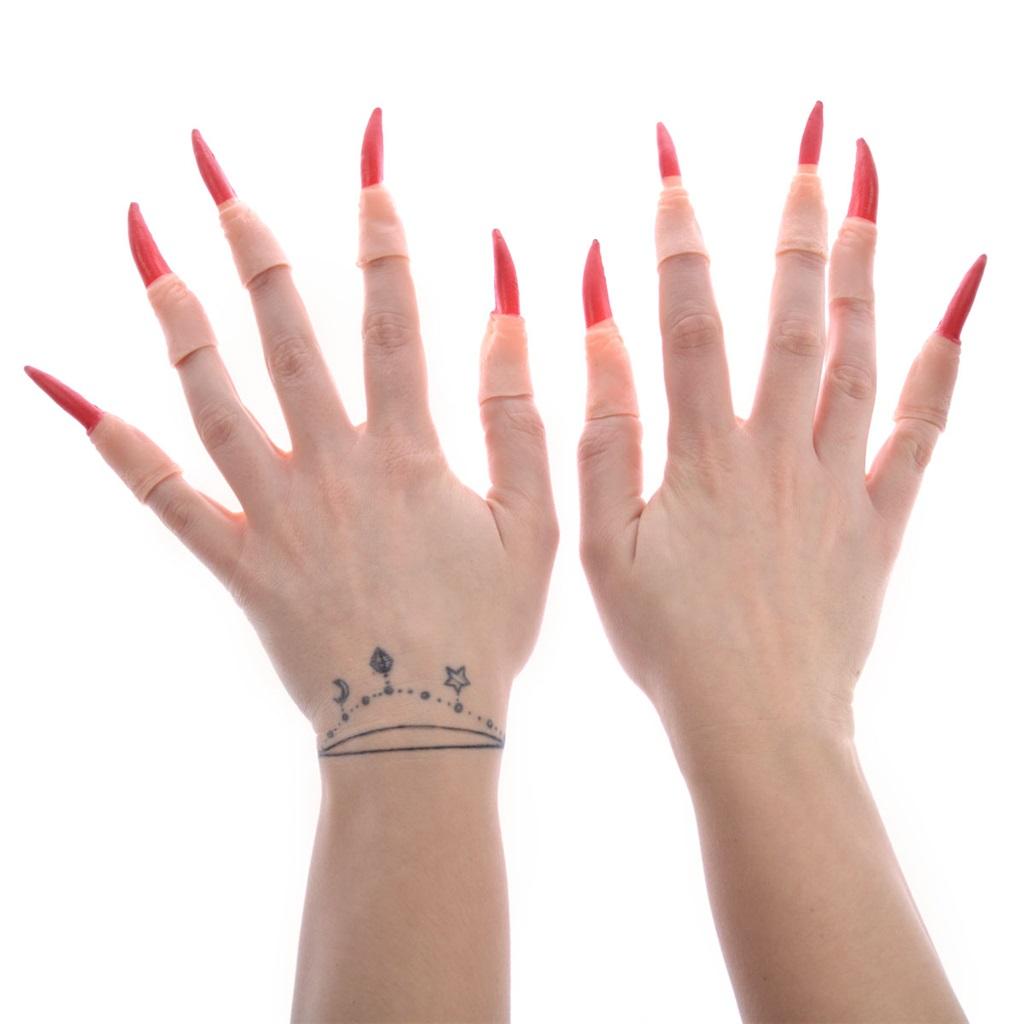 Charakterystyczne dla wiedźmy długie paznokcie - niezbędny dodatek do charakteryzacji. W opakowaniu znajduje się 10 sztuk nakładek na palce imitujących długie pazury wiedźmy. Do wyboru w kolorze czarnym lub czerwonym. Wymiar pojedynczej nakładki: 5-6 cm.