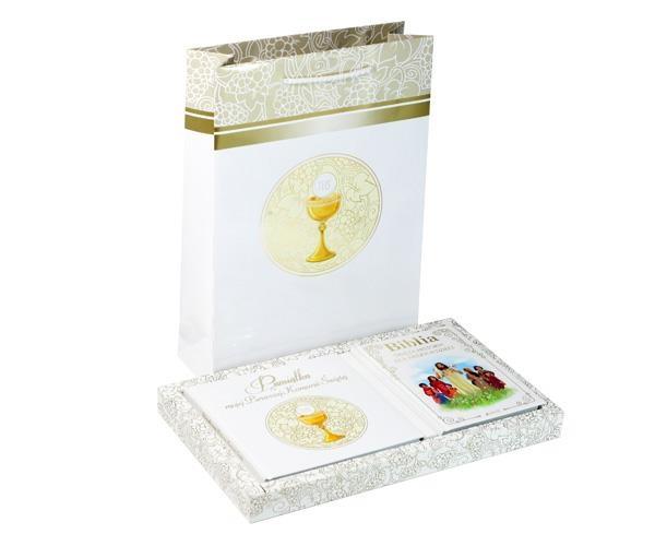 Pamiątka I Komunii Świętej Zestaw: Pamiątka, Biblia, Torba prezentowa