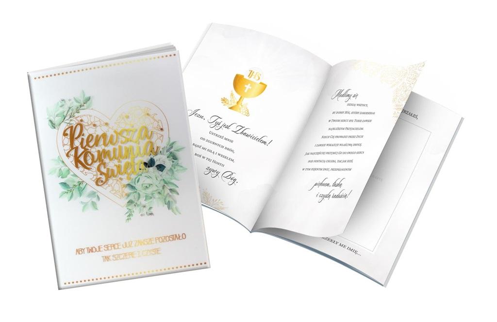 Książeczki PMB to produkt wyjątkowy - pięknie wydany, świetnej jakości, a trójwymiarowy efekt ruchu na okładce robi ogromne wrażenie. Każda książeczka ma twardą okładkę z efektem 3D na froncie, kolorowne wnętrze z pięknymi grafikami i cytatami oraz życzenia i miejsce na osobistą dedykację. Na wewnętrznej stronie zdobionej złotą lyb srebrną folią okładki wklejona jest specjalna, nieduża koperta, w której można przekazać kartę podarunkową lub banknot. Książeczka PMB 3DV Kukartka to idealny prezent na wyjątkową okazję, jaką niewątpliwie jest Pierwsza Komunia Święta Cechy szczególne: okładka: twarda, wyściełana, zdobienie: złota lub srebrna folia, wnętrze: kolorowe, z grafikami, cytaty, miejsce na dedykację, zdjęcie pamiątkowe i wpisanie miejsca/godziny uroczystości, gratis: koperta na drobny upominek wewnątrz, okazja: komunia, Pierwsza Komunia Święta.