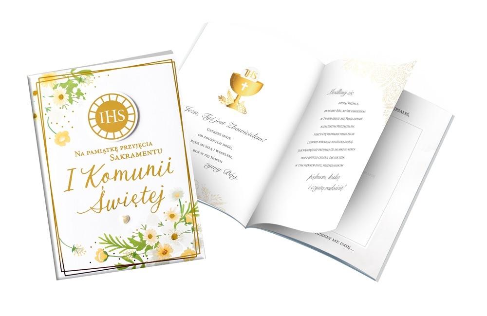 Książeczki PMB Premium to produkt wyjątkowy - pięknie wydany z twardą okładką zdobioną perłową i złotą folią oraz dodatkami takimi jak perły i diamenciki, z kolorowym wnętrzem, pięknymi grafikami i cytatami oraz życzeniami i miejscem na osobistą dedykację. Na wewnętrznej stronie okładki wklejona jest specjalna, nieduża koperta, w której można przekazać kartę podarunkową lub banknot. Książeczka PMB Premium Kukartka to idealny prezent na wyjątkową okazję, jaką niewątpliwie jest Pierwsza Komunia Święta.
