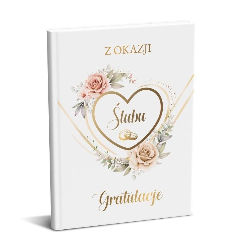 Książeczka z Okazji Ślubu w formacie A5 wraz z kopertą w środku. Format: A5 (poręczny i elegancki), Kolorowe ilustracje w środku, które nadają całości wyjątkowego charakteru, Miejsce na osobiste wpisy - idealna do zachowania wspomnień z uroczystości, Koperta wewnątrz.