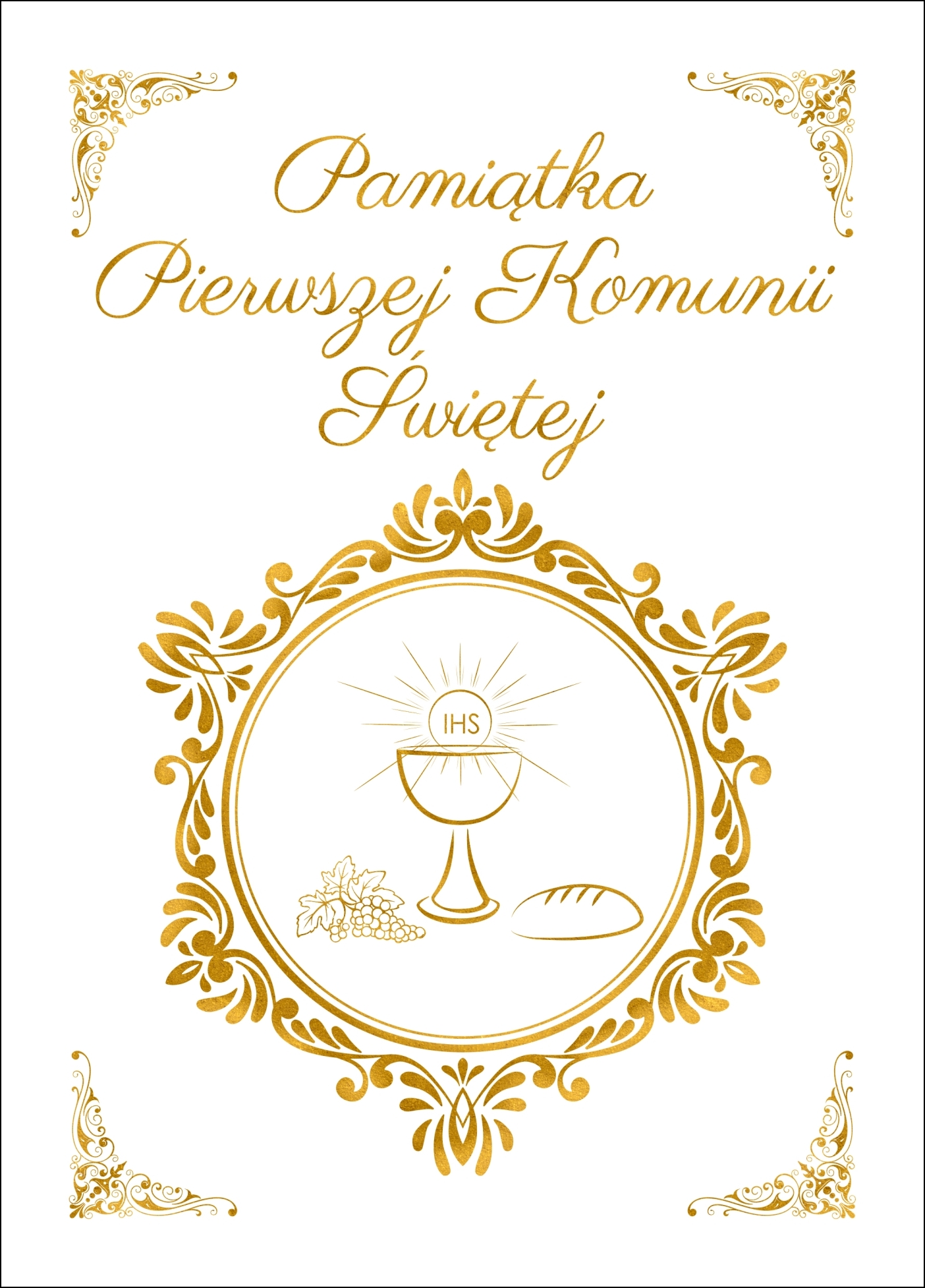 Pamiątka Pierwszej Komunii Świętej to album, który pozwoli zachować chwile tego wyjątkowego wydarzenia w życiu dziecka. W albumie są miejsca przeznaczone do wklejania pamiątkowych zdjęć oraz wpisywania życzeń przez gości.