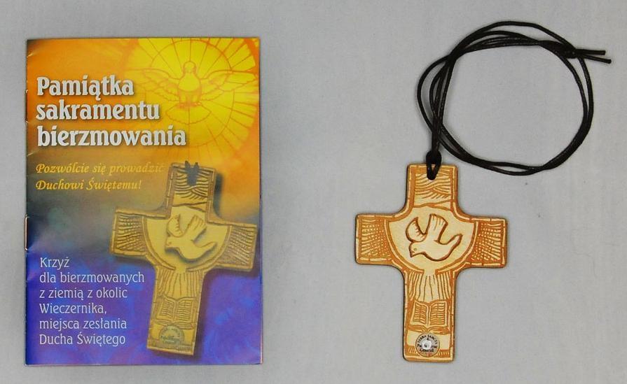 Krzyż dla bierzmowanych z ziemią z okolic Wieczernika, miejsca zesłania Ducha Świętego.