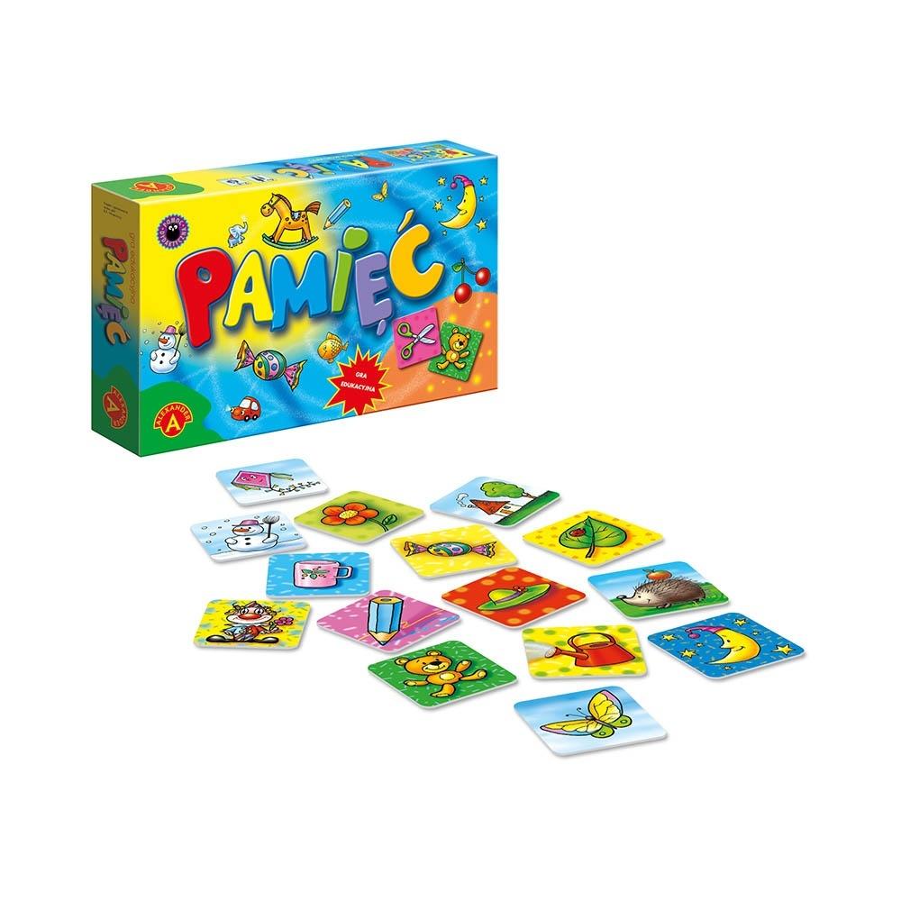 To prosta i łatwa gra. Każdy, kto gra w "Pamięć" ćwiczy swą spostrzegawczość, koncentrację, prawidłowość skojarzeń, a przede wszystkim doskonali swą pamięć. Ważną i wyjątkową cechą tej gry jest to, że dorośli grając w nią z dziećmi nie mają przewagi wynikającej z różnicy wieku. W każdej rozgrywce dzieci są silnym przeciwnikiem dla dorosłych i najczęściej z nimi wygrywają. Gra w "Pamięć" to dużo wesołej i ekscytującej zabawy, a także dobry wysiłek umysłowy. Zawartość pudełka: 70 obrazków, instrukcja. Wiek graczy: 4+ Liczba graczy: 2-8