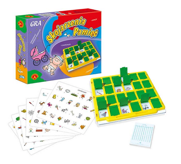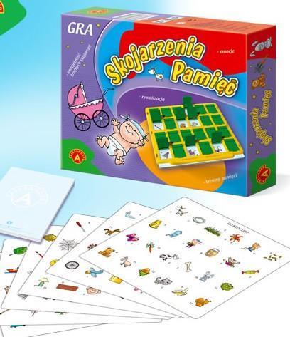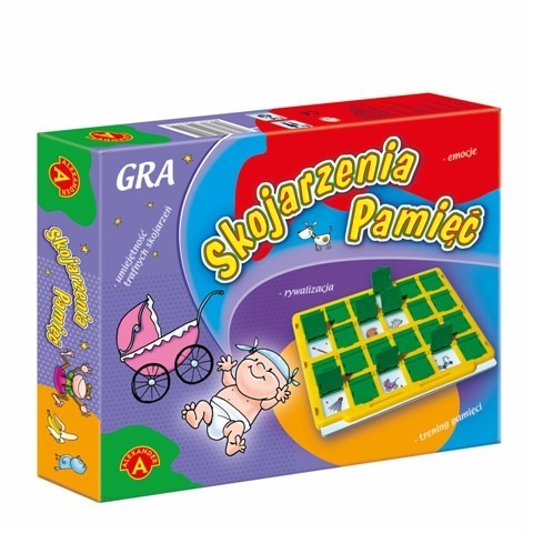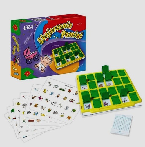 W tej grze wygrywa ten, kto będzie właściwie kojarzył odsłaniane obrazki (np. dziecko i wózek) pamiętając miejsce ich położenia. Gra jest znakomitym treningiem koncentracji i pamięci, a także emocjonującą zabawą. Zawartość pudełka: 6 tablic, plastikowa ramka, notes, instrukcja. Liczba graczy: 1-4 Wiek: 5+