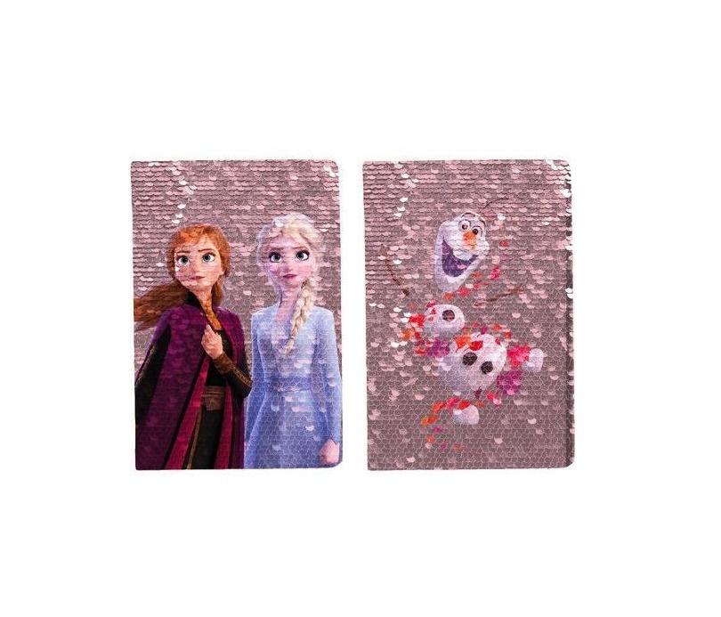 Pamiętnik Frozen cekinowy dwustronny. Rozmiar A5, 70 kartek, papier 70 g, 1-kolorowy zadruk wewnętrzny.