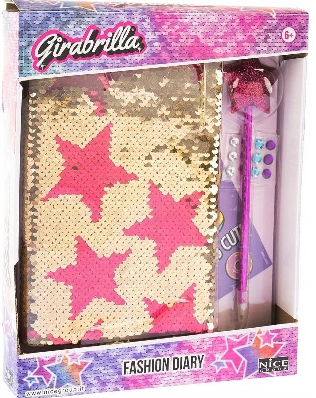 Opakowanie Pamiętnik cekinowy złoty różowe gwaizdy