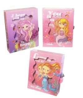 Kolorowy pamiętnik w twardej oprawie z motywem syrenki i kłódką do zapisywania wszystkich swoich najskrytszych sekretów. Produkt występuje w kilku wersjach kolorystycznych, wybierany losowo. Cena dotyczy jednej sztuki.