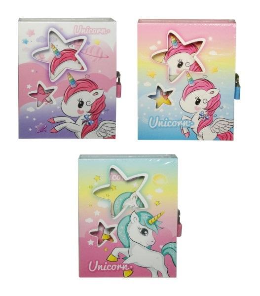 Kolorowy pamiętnik w twardej oprawie z motywem jednorożca i kłódką do zapisywania wszystkich swoich najskrytszych sekretów. Produkt występuje w kilku wersjach kolorystycznych, wybierany losowo. Cena dotyczy jednej sztuki. Podane wymiary są wymiarami pamiętnika