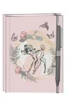 Pamiętnik zamykany na gumkę. W zestawie z zakładką i długopisem.