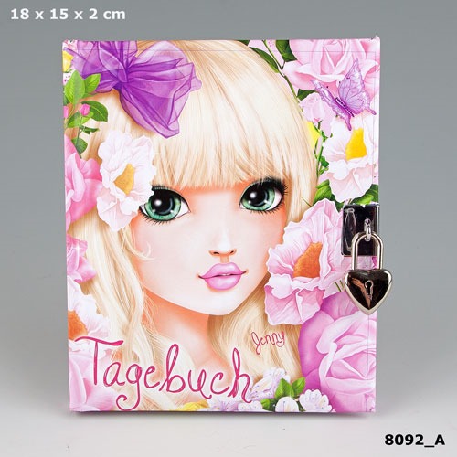 TOP MODEL - prześliczny pamiętnik zamykany na kłódkę w kształcie serca. Pomieści wszystkie sekrety. Zdobiona brokatem okładka przedstawia prześliczną modelkę Jenny.