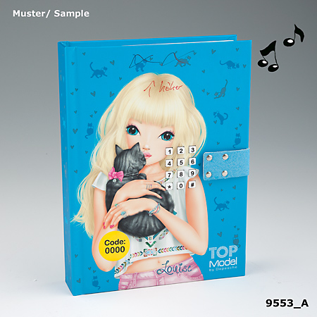 Pamiętnik na kod TOPModel, na najskrytsze zapiski, po otwarciu przez chwilę gra modną piosenkę I really like you. W środku polska instrukcja, wymienne baterie.