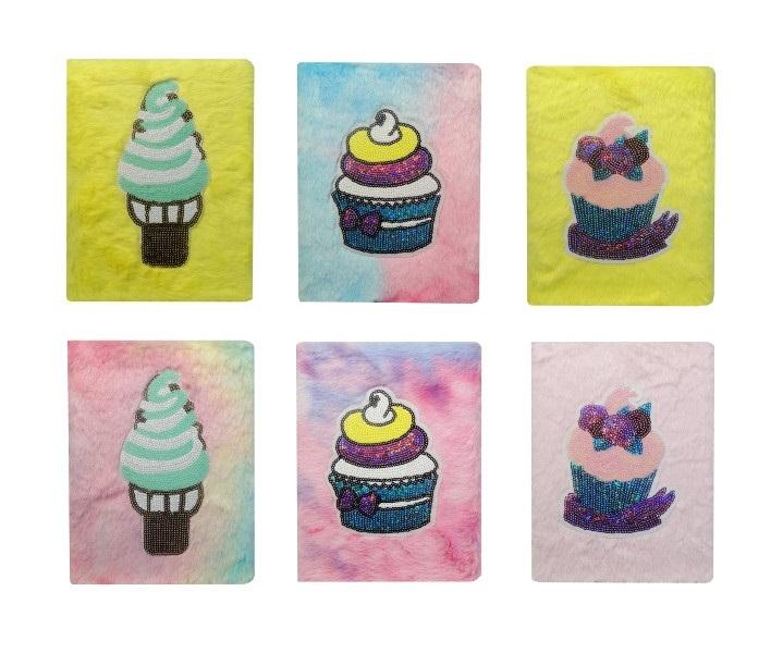 Kolorowy pluszowy pamiętnik z motywem cekinowych babeczek i lodów do zapisywania wszystkich swoich sekretów. Wewnątrz pamiętnika znajdują się linie, które ułatwią zapisywanie. Produkt występuje w kilku wersjach kolorystycznych, wybierany losowo. Cena dotyczy jednej sztuki. Podane wymiary są wymiarami pamiętnika