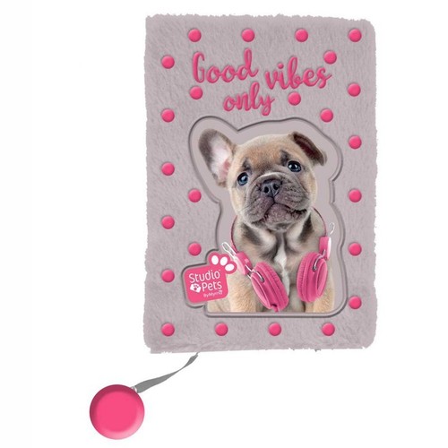 Pamiętnik z pluszową okładką i wyszywanym wizerunkiem zwierzątka, wymiary 15 x 20,5 cm, 80 kartek.