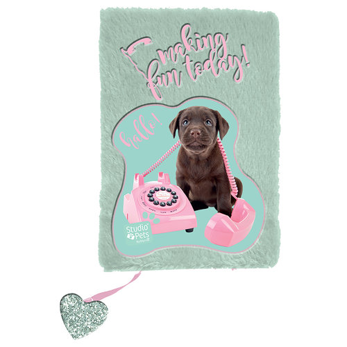 Pamiętnik A5, 80 kartek 70gsm,wykonany z miękkiego pluszu, z wyszywanym wizerunkiem zwierzaka. Dodatkowo brokatowa zakładka.