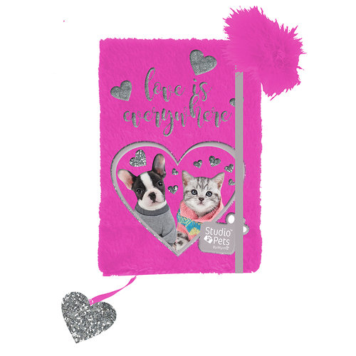 Pamiętnik pluszowy z gumką i długopisem Studio Pets