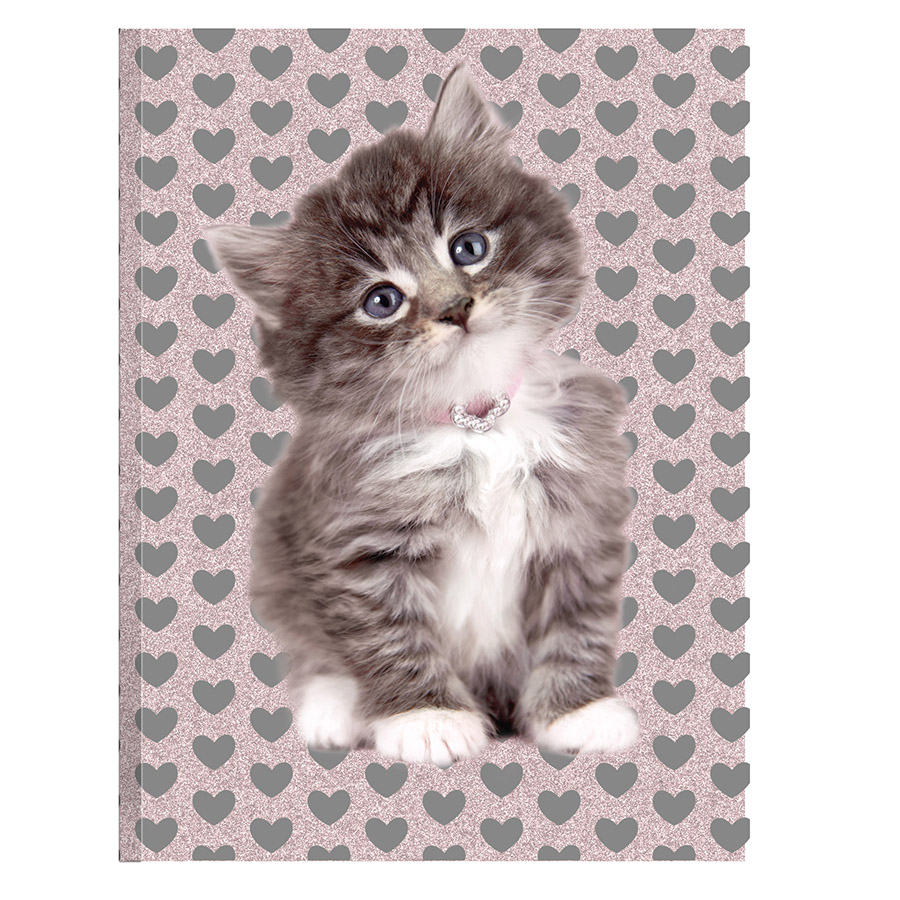 Pamiętnik Rachael Hale pudrowy róż w szare serduszka w miękkiej brokatowej oprawie z kolorową owijką, wymiary 12x17 cm, 80 kartek w linie.