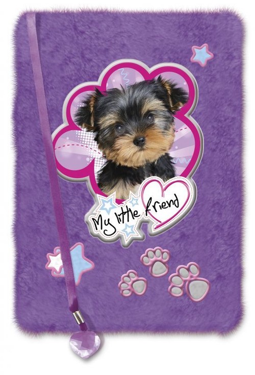 Fioletowy pamiętnik z motywem Yorka, to wspaniałe miejsce na przechowywanie dziewczęcych tajemnic. Włochata okładka jest bardzo miła w dotyku i wykonana z najwyższą jakością. Wnętrze pamiętnika wypełniają kartki z ozdobnymi motywami. Pamiętnik zamykany na kłódkę, posiada 2 kluczyki oraz tasiemkę do przekładania kartek.