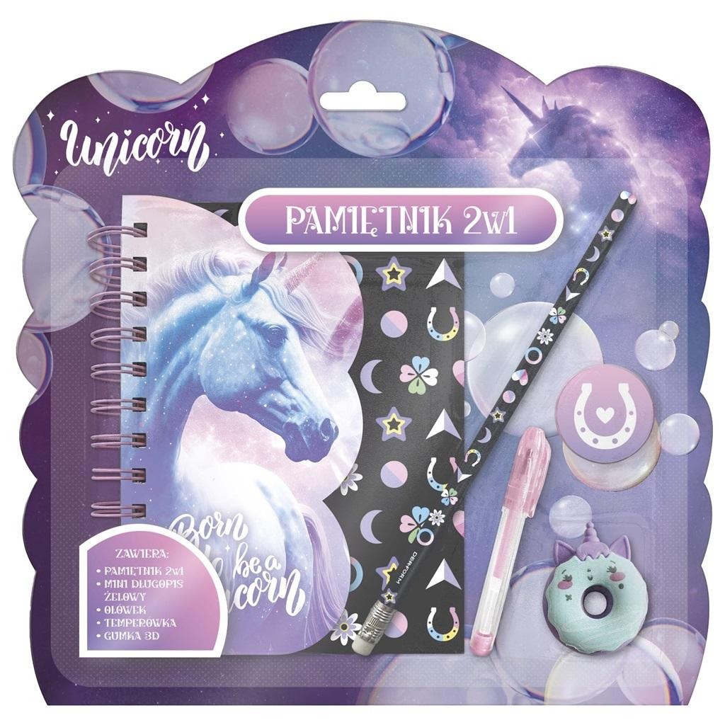 Pamiętnik z kłódką 2w1 + zestaw przyborów Jednorożec 15.