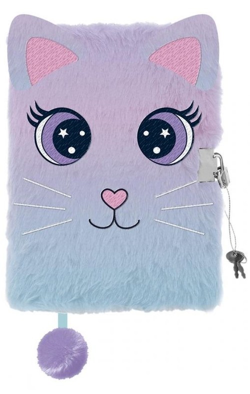 Pamiętnik z kłódką 3D włochacz A5 96k Pastel Cat