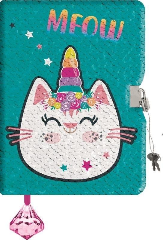 Pamiętnik z kłódką cekiny dwustronne CATCORN A5, 96 kartek, linia