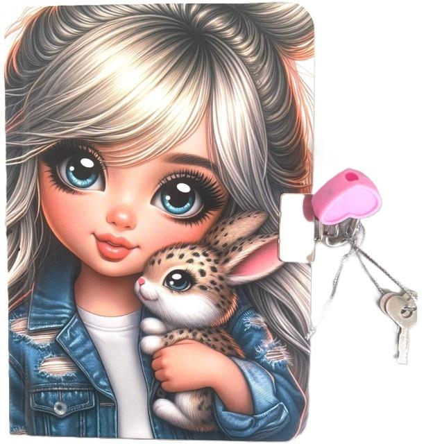 Pamiętnik z kłódką A6 N9859 Dziewczynka z królikiem 64 stron gładki