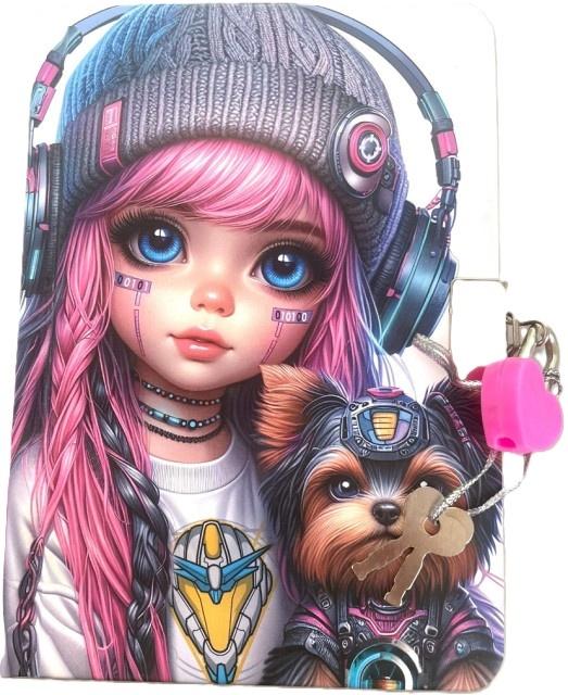 Pamiętnik z kłódką A6 N9857 Dziewczynka z yorkiem 64 stron gładki