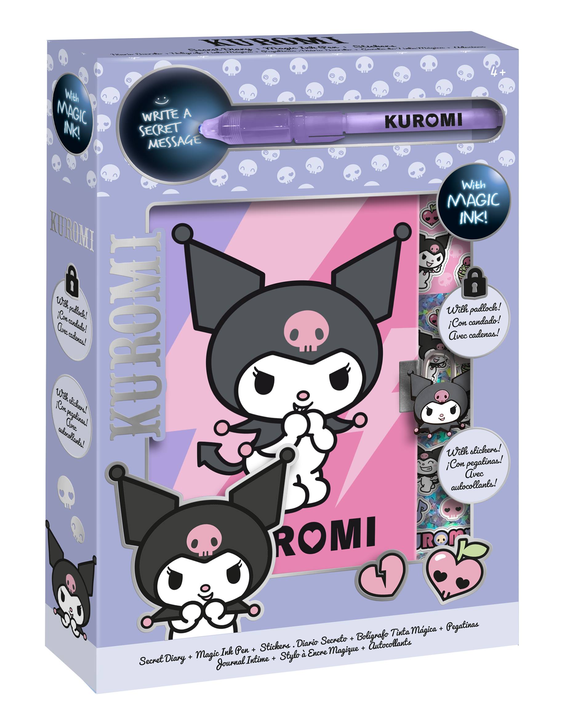 Ten kompleksowy zestaw zawiera dziennik w formacie A4 o spektakularnym „pastelowo-punkowym” wzorze, z uśmiechniętą Kuromi na różowo-fioletowym tle. Aby zapewnić całkowitą prywatność, dziennik jest wyposażony w metalową kłódkę i zestaw kluczy spersonalizowanych zawieszką z twarzą Kuromi. Jednak prawdziwa magia tkwi w piórze z niewidzialnym atramentem: zapisz swoje sekrety i użyj światła wbudowanego w skuwkę, aby je ujawnić jak za dotknięciem czarodziejskiej różdżki.