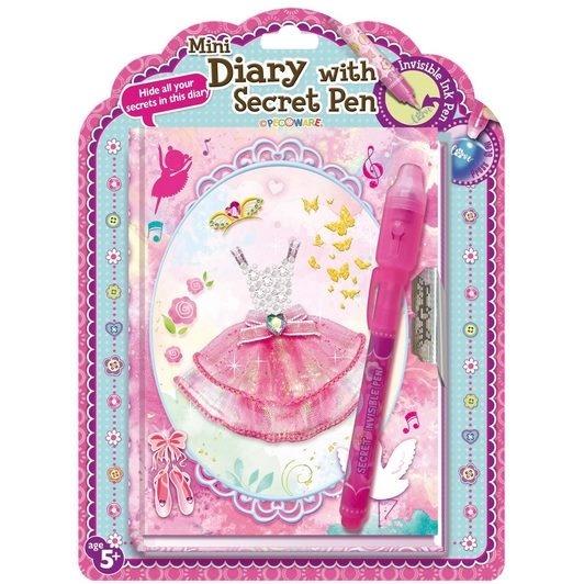 Dzięki małemu rozmiarowi będzie idealny jako pierwszy pamiętnik. Zawiera kartki z liniami na drobne zapiski, a bogate zdobienia i dekoracje przyciągną wzrok. Jedna końcówka długopisu pisze "niewidzialnym" tuszem, który będzie widoczny dopiero po zamalowaniu go drugą końcówką. W zestawie 2 kluczyki do otwierania zamka. Wiek: 5+