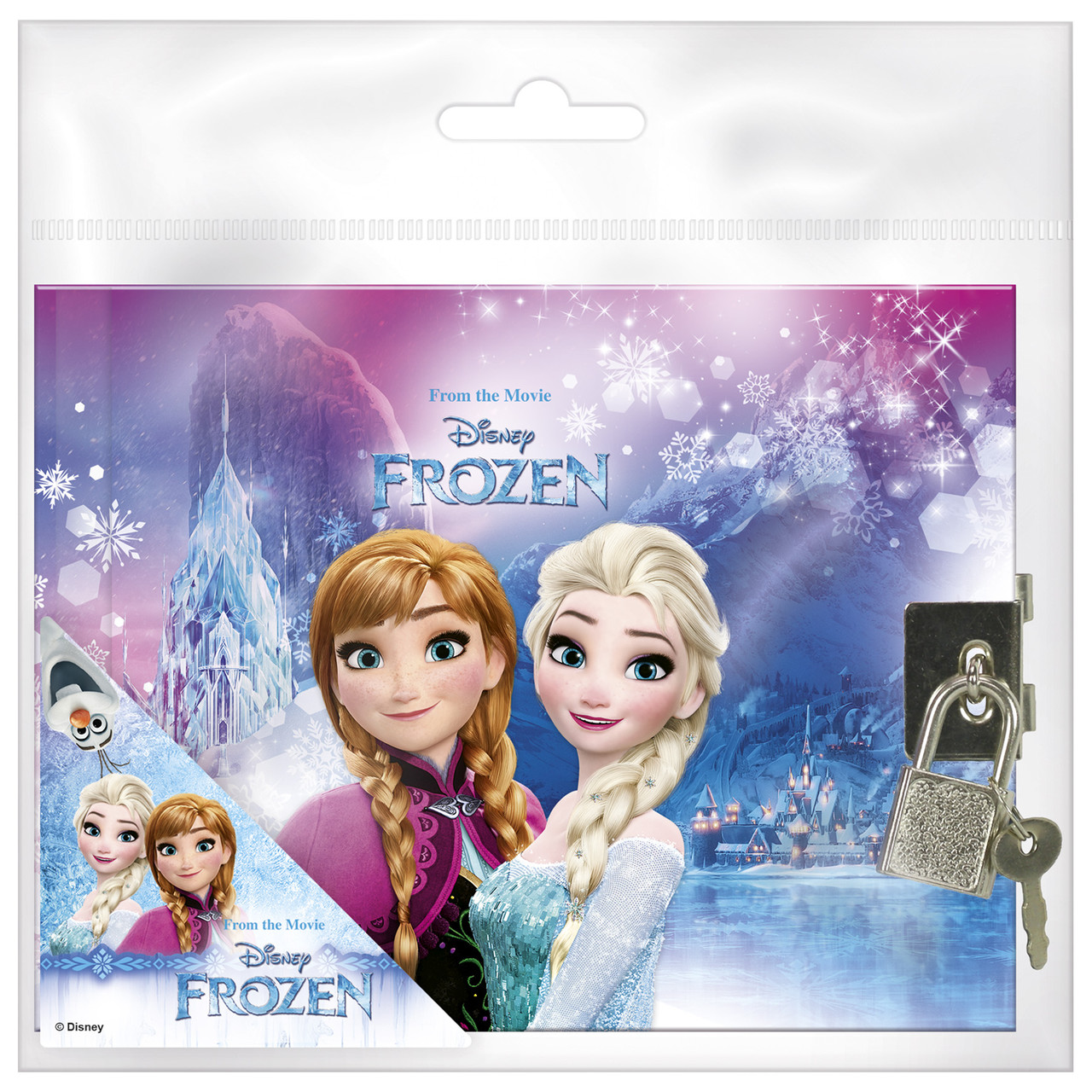 Pamiętnik na spirali, zamykany na gumkę, ozdobiony wizerunkami bohaterek filmu animowanego Kraina Lodu