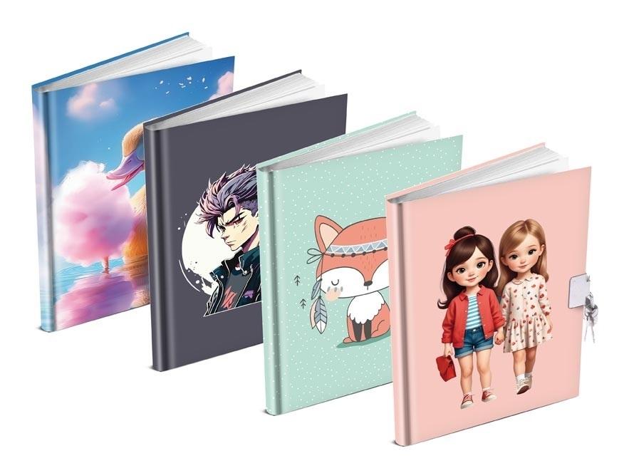 Pamiętnik MFP z zamknięciem, mix wzorów. Wymiar: 140 x 190 mm Dostarczane w mixach 4 wzorów. Cena za 1 szt. Wymiar: 140mm x 15mm x 190mm (szer. x wys. x głęb.)