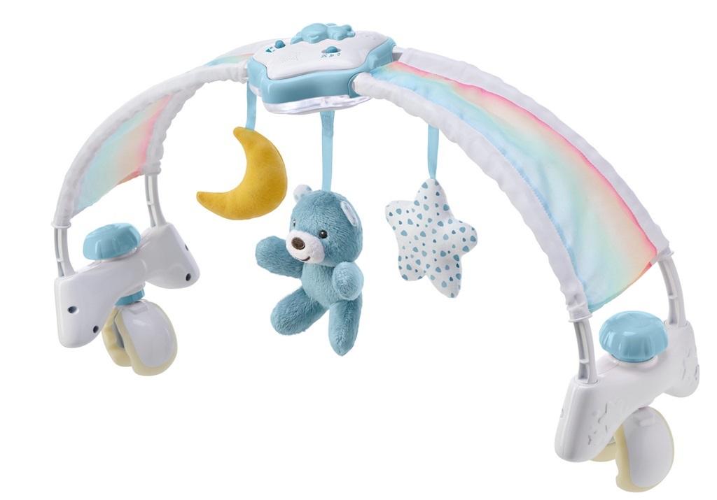 0-6 M panel na łóżeczko z relaksującymi klasycznymi melodiami, zawieszkami oraz delikatnym białym światłem projektora w kształcie gwiazdy, z efektem wygaszania w ostatnich 5 minutach cyklu automatycznego;