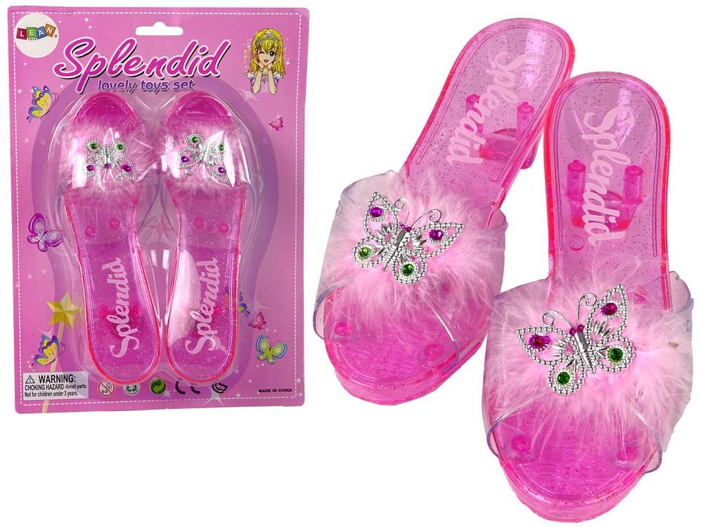Brokatowe Różowe Pantofelki Księżniczki z Futerkiem Idealne na Bal ! Piękne, mieniące się brokatem pantofelki będą niesamowitym upominkiem dla każdej małej księżniczki, która uwielbia przebierać się i stroić. Buciki stanowią świetne uzupełnienie stroju każdej małej stylistki. Broaktowe Pantofelki z pewnością przydadzą się podczas Karnawału czy innych imprez w przedszkolu i w domu. Doskonałe do zabawy w pokaz mody czy bal na zamku. Pięknie wykonane, mieniące się brokatem. Z milutkim futerkiem. Spód obcasa zakończony antypoślizgową gumą, Długość wkładki: 19,8 cm Wysokość obcasa: 5 cm