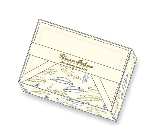 Papeteria w ozdobnym pudełku, papier o gramaturze 390g/m2. W zestawie znajduje się 10 kopert i 10 kartek. Produkt z ekskluzywnej galanterii wyprodukowany we włoskiej manufakturze.