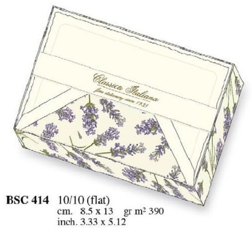 Papeteria w ozdobnym pudełku, papier o gramaturze 390g/m2. W zestawie znajduje się 10 kopert i 10 kartek.
