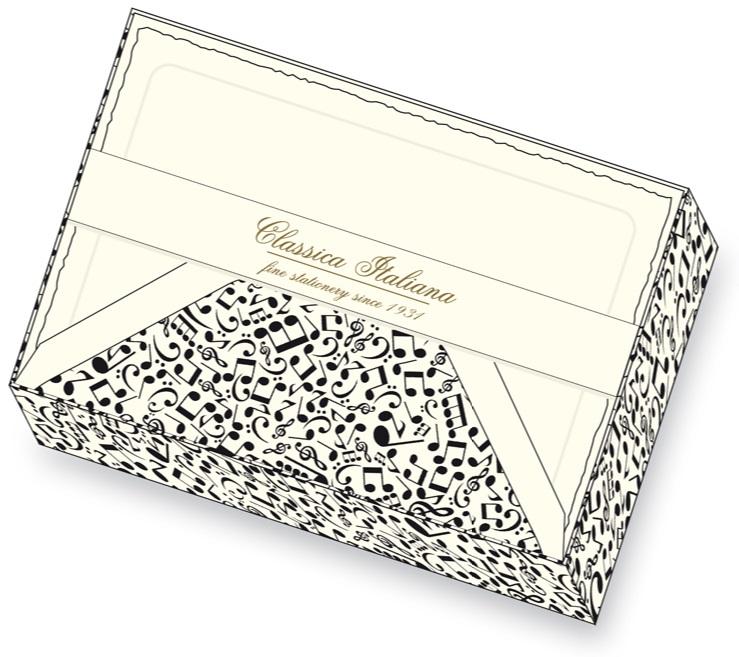 Papeteria w ozdobnym pudełku, papier o gramaturze 390g/m2. W zestawie znajduje się 10 kopert i 10 kartek. Produkt z ekskluzywnej galanterii wyprodukowany we włoskiej manufakturze.