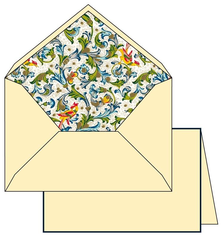 Papeteria w ozdobnym pudełku z przykrywką, papier o gramaturze 240g/m2. W zestawie znajduje się 10 kopert i 10 karnetów. Produkt z ekskluzywnej galanterii wyprodukowany we włoskiej manufakturze.