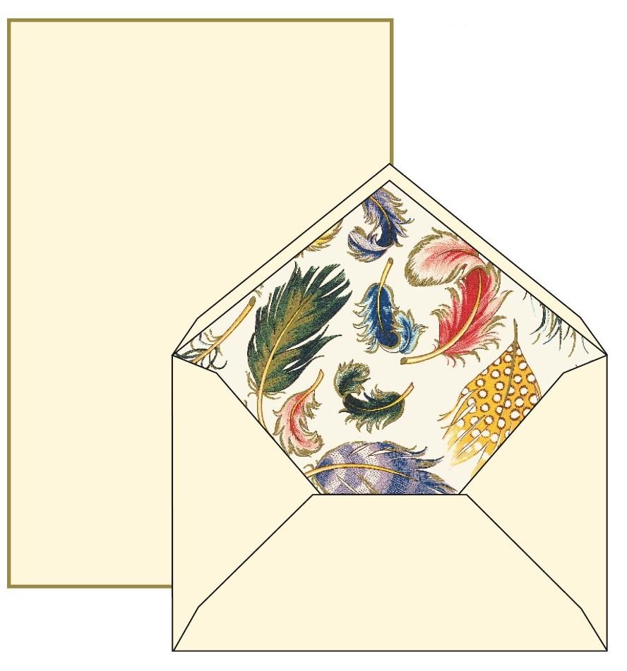 Papeteria w ozdobnym pudełku z przykrywką, koperty posiadają zaznaczoną linię, papier bawełniany o gramaturze 120g/m2. W zestawie znajduje się 10 kopert i 10 papierów listowych. Produkt z ekskluzywnej galanterii wyprodukowany we włoskiej manufakturze.