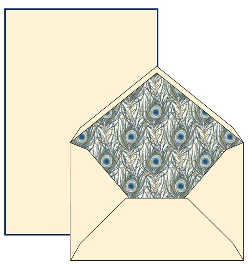 Papeteria w ozdobnym pudełku, papier o gramaturze 120g/m2. W zestawie znajduje się 10 kopert i 10 papierów listowych.