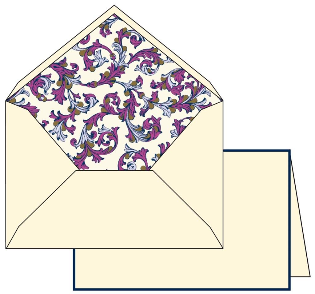 Papeteria w ozdobnym pudełku, papier o gramaturze 240g/m2. W zestawie znajduje się 10 kopert i 10 karnetów.