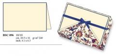 Papeteria w ozdobnym pudełku z przykrywką, papier o gramaturze 240g/m2. W zestawie znajduje się 10 kopert i 10 karnetów. Produkt z ekskluzywnej galanterii wyprodukowany we włoskiej manufakturze.