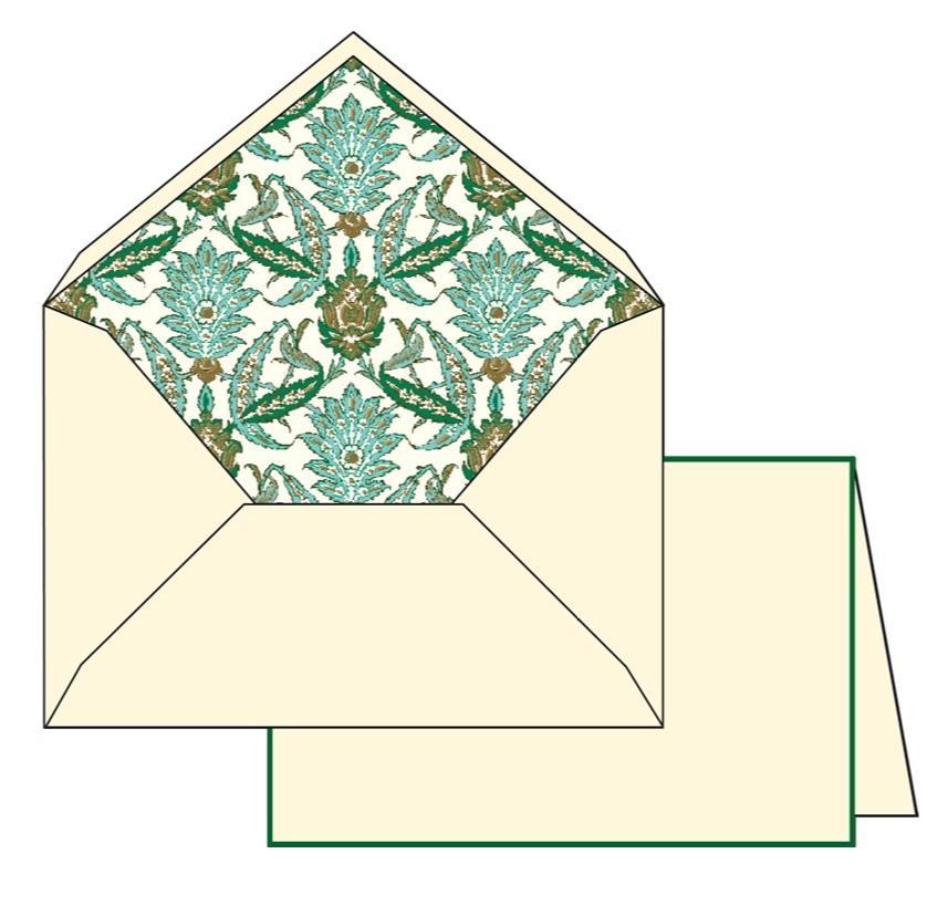 Papeteria w ozdobnym pudełku z przykrywką, papier o gramaturze 240g/m2. W zestawie znajduje się 10 kopert i 10 karnetów. Produkt z ekskluzywnej galanterii wyprodukowany we włoskiej manufakturze.