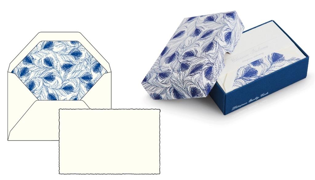Papeteria w ozdobnym pudełku, papier o gramaturze 390g/m2. W zestawie znajduje się 10 kopert i 10 kartek.