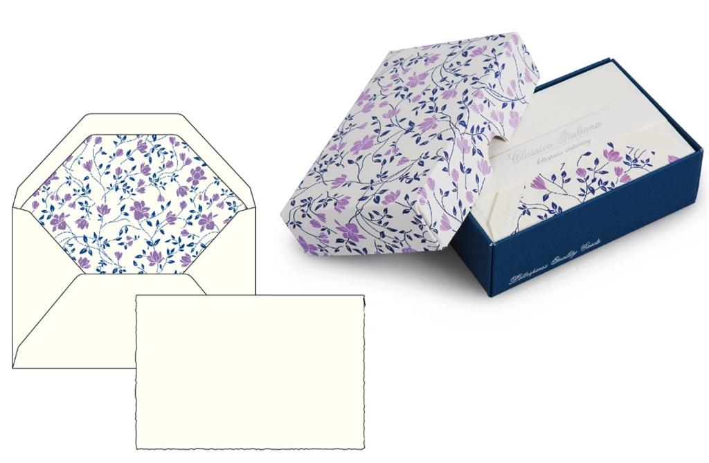 Papeteria w ozdobnym pudełku, papier o gramaturze 390g/m2. W zestawie znajduje się 10 kopert i 10 kartek.