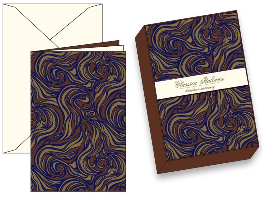 Papeteria w ozdobnym pudełku, papier o gramaturze 250g/m2. W zestawie znajduje się 10 kopert i 10 karnetów.