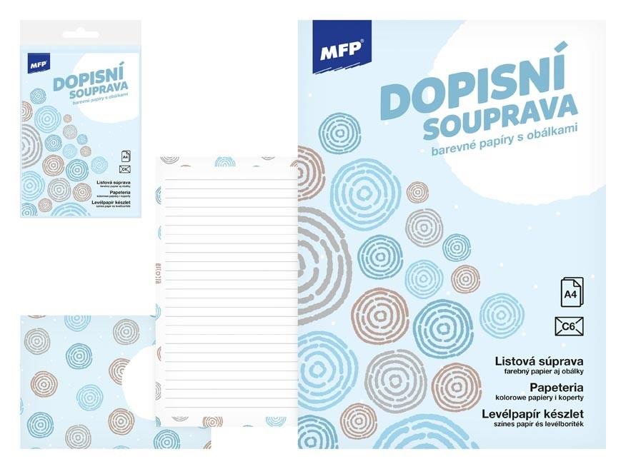 Zestaw papeterii. Zawiera 10 kartek A4 z nadrukiem oraz 5 kopert C6 z nadrukiem. Cały zestaw jest zapakowany w twardą oprawkę z nadrukiem i zafoliowany, posiada również eurozawieszkę.