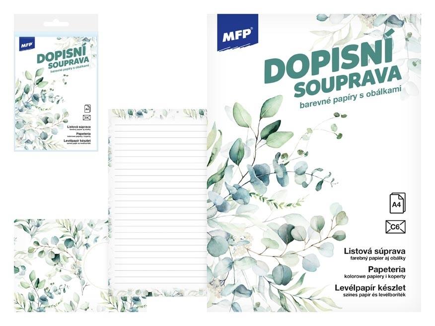 Zestaw papeterii. Zawiera 10 kartek A4 z nadrukiem oraz 5 kopert C6 z nadrukiem. Cały zestaw jest zapakowany w twardą oprawkę z nadrukiem i zafoliowany, posiada również eurozawieszkę.