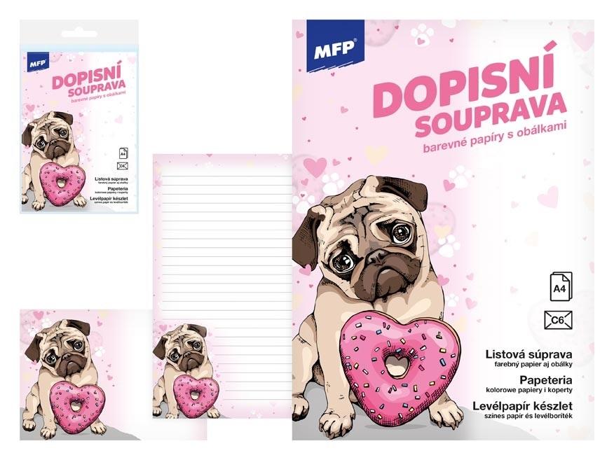 Zestaw papeterii. Zawiera 10 kartek A4 z nadrukiem oraz 5 kopert C6 z nadrukiem. Cały zestaw jest zapakowany w twardą oprawkę z nadrukiem i zafoliowany, posiada również eurozawieszkę.
